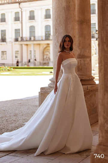 Sexy strapless pailletten decal trouwjurk A-lijn mouwloze satijnen bruidsjurk