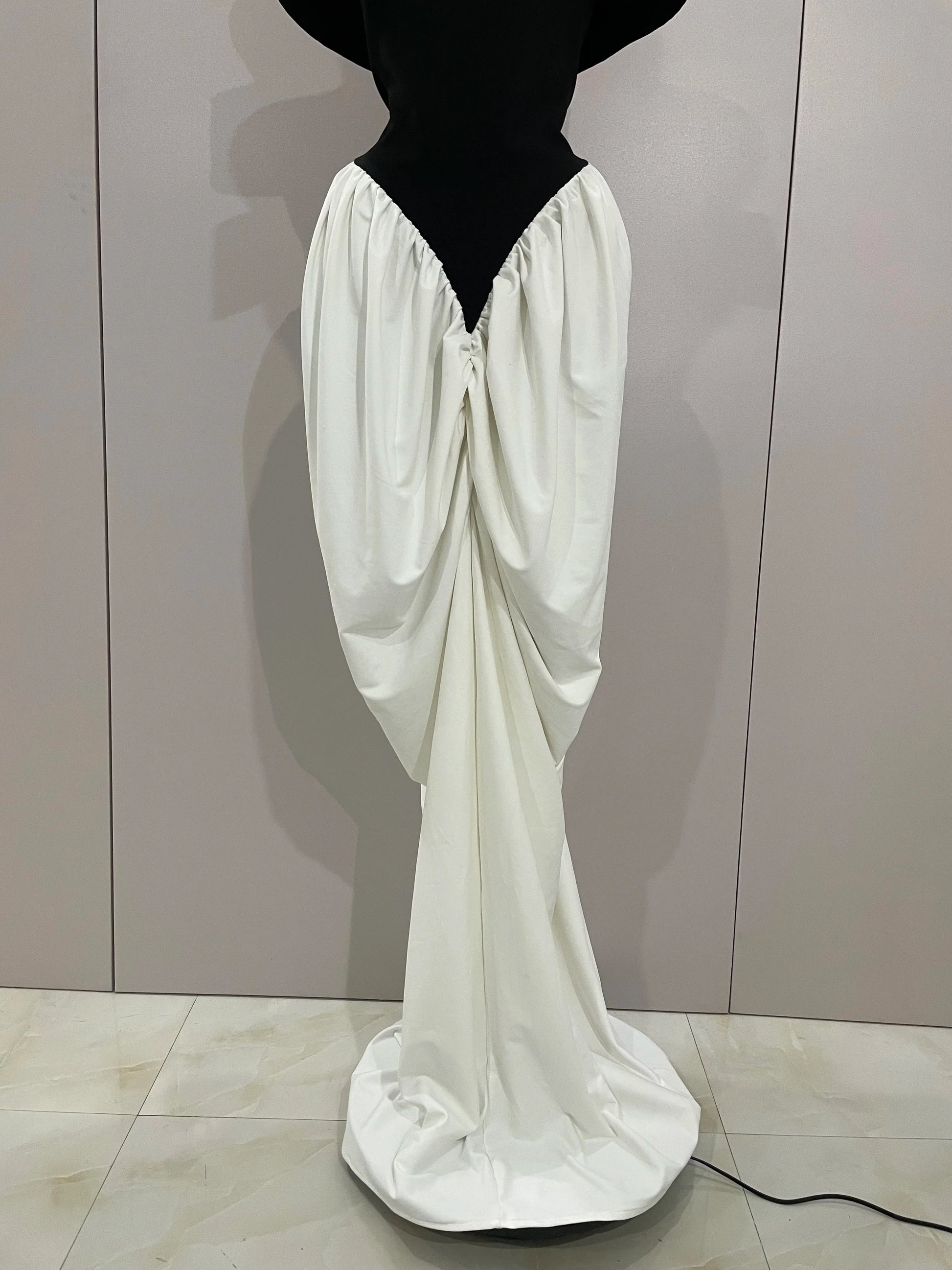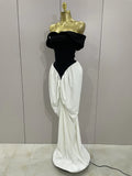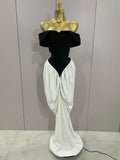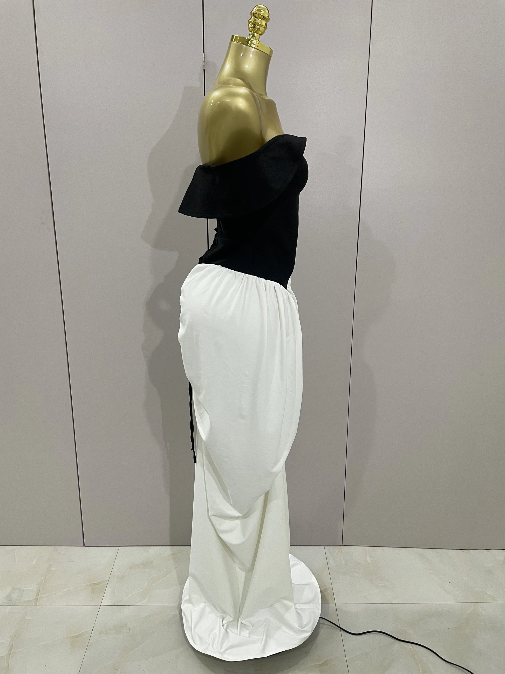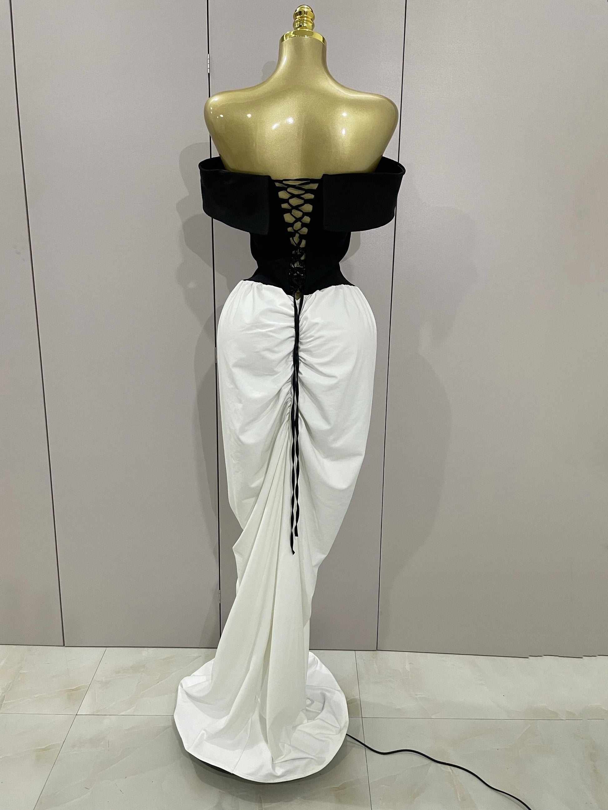 Sexy V Neck off-The-Shoulder Black And White Splicing Mermaid Floor-length dress Women Formal Evening Birthday Party Dress