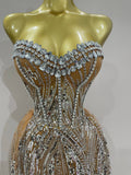 Sparkly Rhinestone Sequins Sexy Strapless See-Through Long Dress Women Evening Birthday Party Dress Nightclub Stage Costume