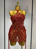 Sparkly Sequin Diamond Mesh Transparent Two Piece Set Women Sexy Evening Party Celebrate Birthday Photo Shoot Wear
