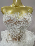 Stock Sexy White Lace Strapless Tops Ruffles Mini Skirt 2 PCS Set Women Evening Party Nightclub Singer Stage Performance Costume