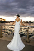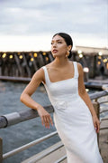 Trendy Mermaid Bruiden Trouwjurken Vierkante Hals Tule Riem Rechte Rugloze Rits Abito Da Sposa Op Maat Gemaakt