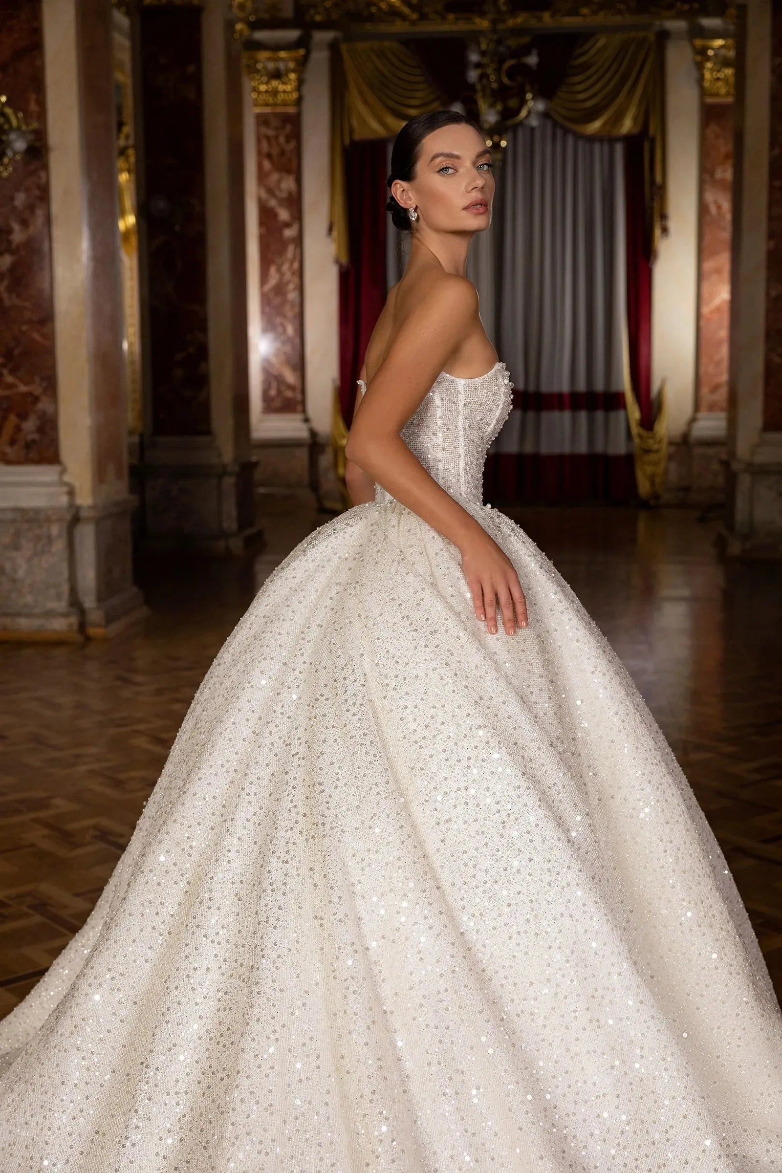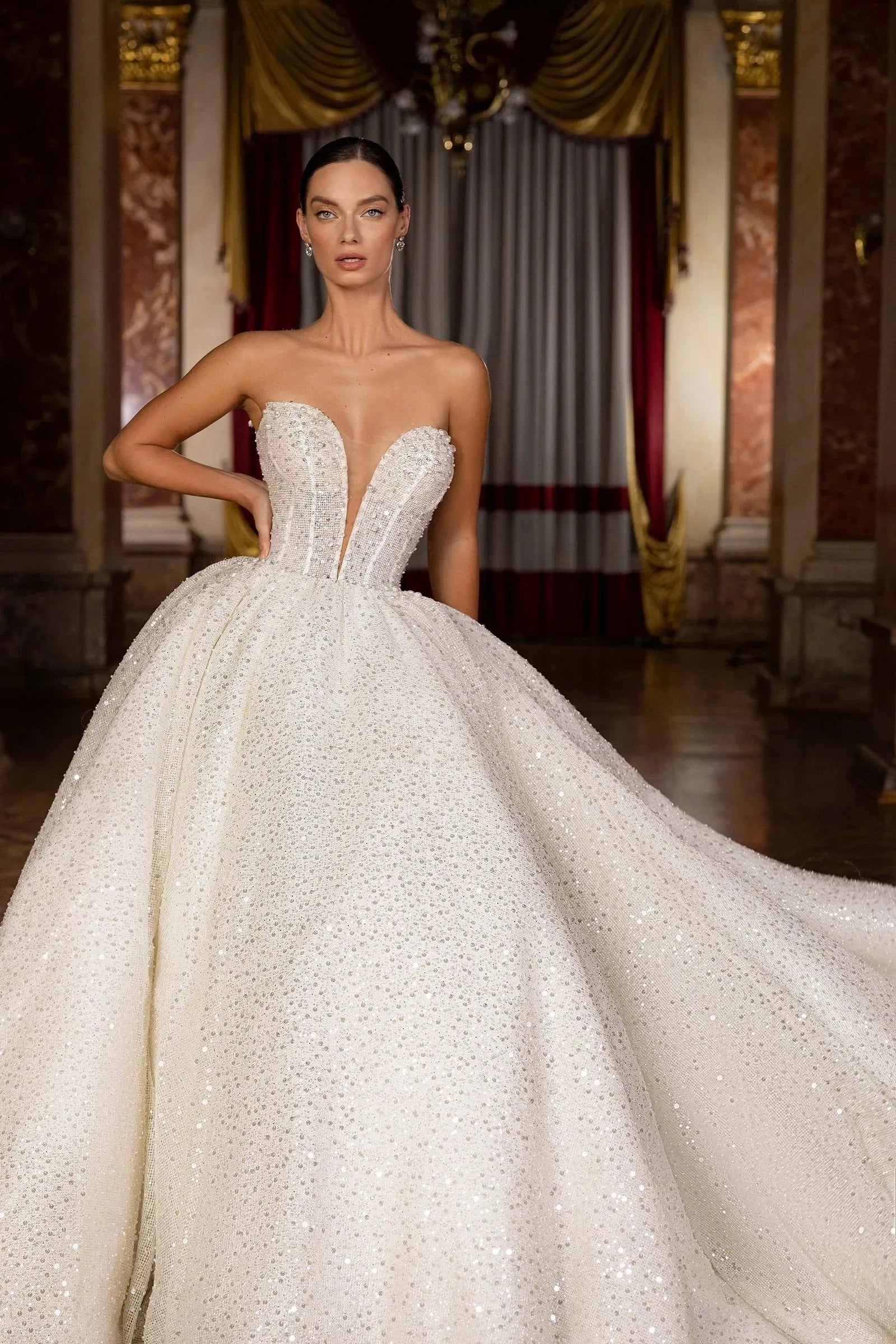 Vintage Glitter Kant Bruidsjurken A-Lijn Glanzende Sweetheart Bruidsjurken Prinses Glinsterende Bruidsjurk