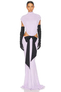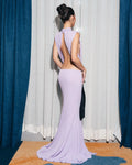 White Purple Women Sleeveless O-Neck Hollow Out Waist Bodycon Floor-length Gown Dress Elegant Evening Party Cocktail Outfit