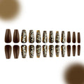 Winter 3D Flower Ballerina Press On Nails Set Long Glossy Coffee Brown False Nails With Golden Floral Accents Fake Nails Set