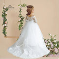 Witte kinderbruidsmeisjesjurk voor meisjes Bloemen Lange mouwen Bloemenkant Tule A-lijnjurk Applicaties Bruiloft Evenement