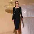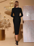 Women Autumn Sexy Long Sleeve Diamond Crystal Black Midi Bodycon Bandage Dress 2025 Elegant Party Performance Vestidos