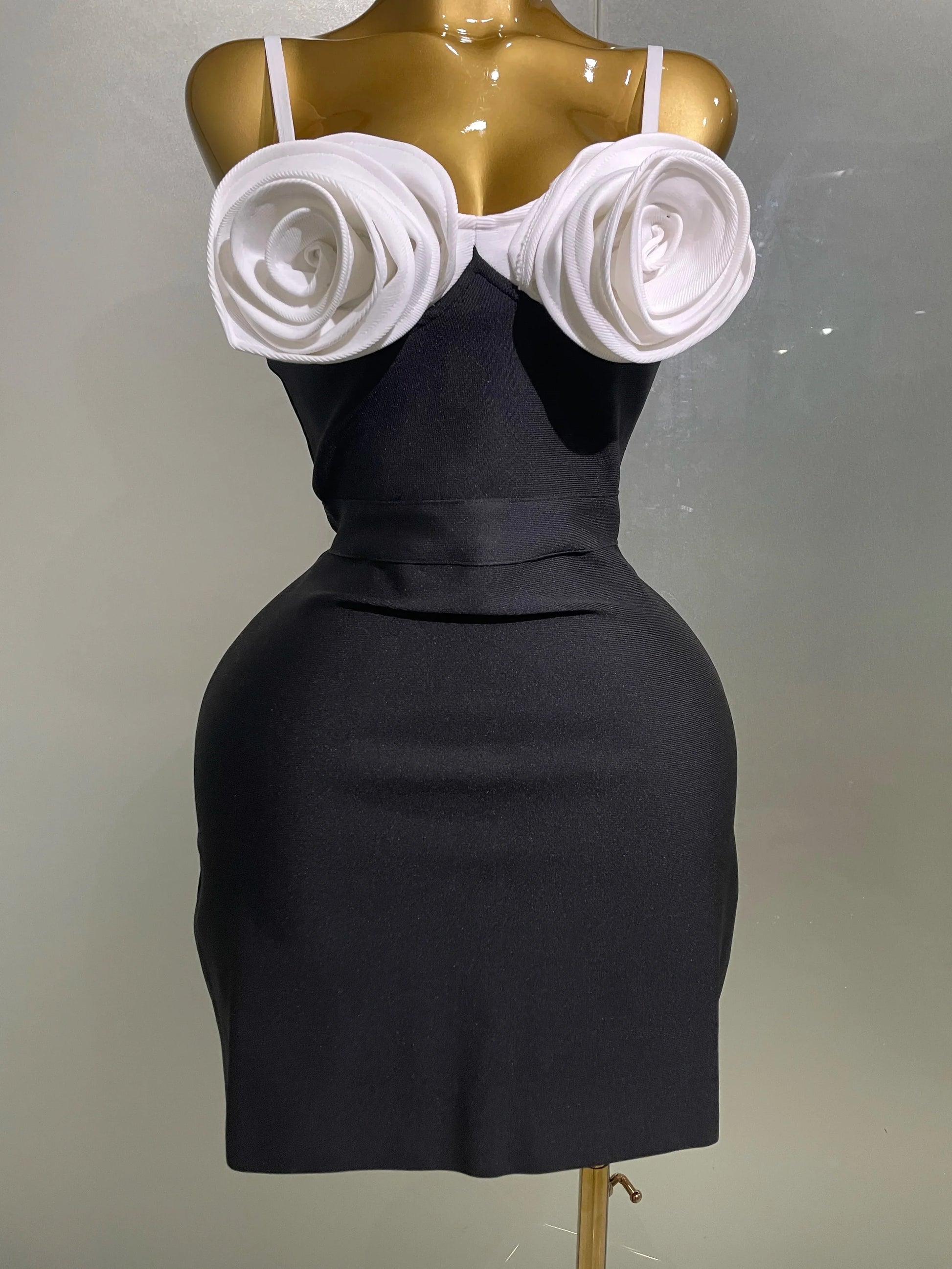 Women New Celebrity Sexy Sleeveless 3D Flower Patchwork Mini Bodycon Bandage Short Dress Elegant Evening Club Party Dress