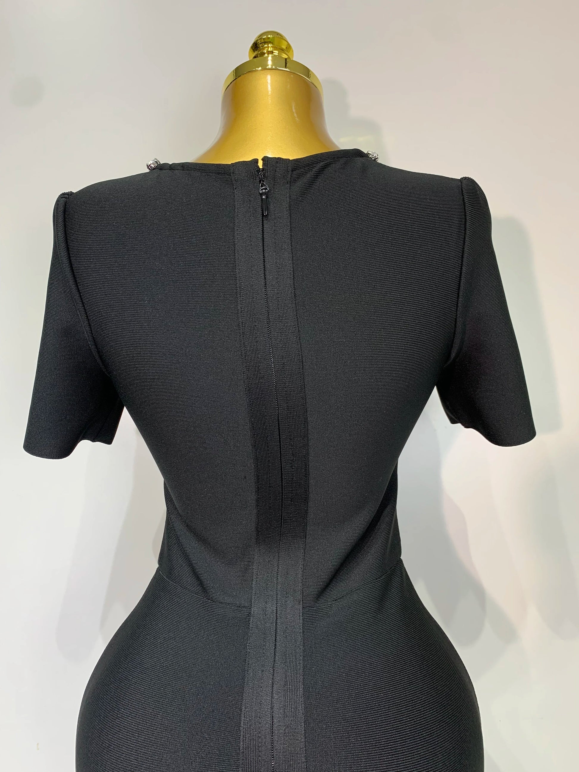 Women Sexy Luxury Rhinestone Short Sleeve Bodycon Dress Party Evening Celebrate Birthday Black Bandage Club Prom Gown
