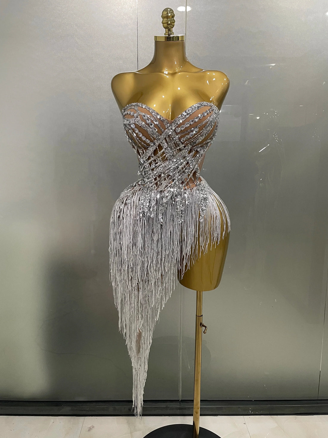 Flashing Sequins Tassels Sexy See-Through Sheath Bodysuit Evening Party Nightclub Dancer Stage Perfprmance Costume