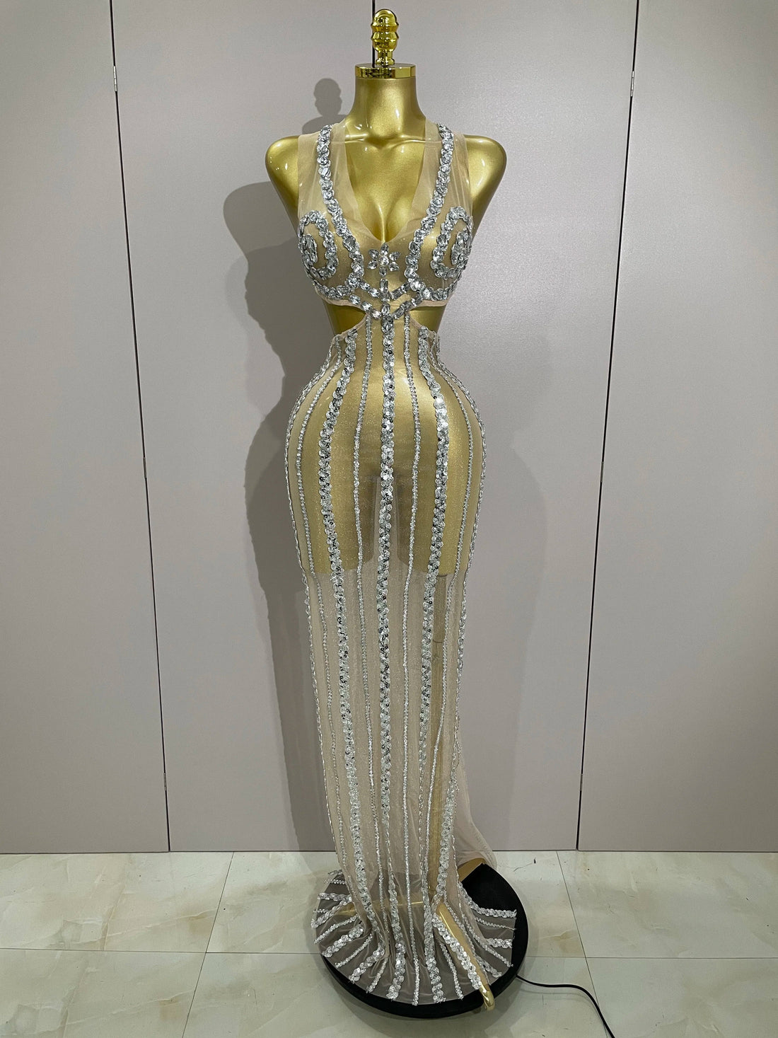 Luxury Sparkly Diamonds Sequins Sexy Mesh See Through Long Dress Women Celebrate Birthday party Dresses Festival Costume