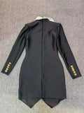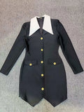 2024 Autumn Women Elegant Bandage Dress with Large Collar Long Sleeve Button Design Bodycon Asymmetric Mini Dress Party Vestidos