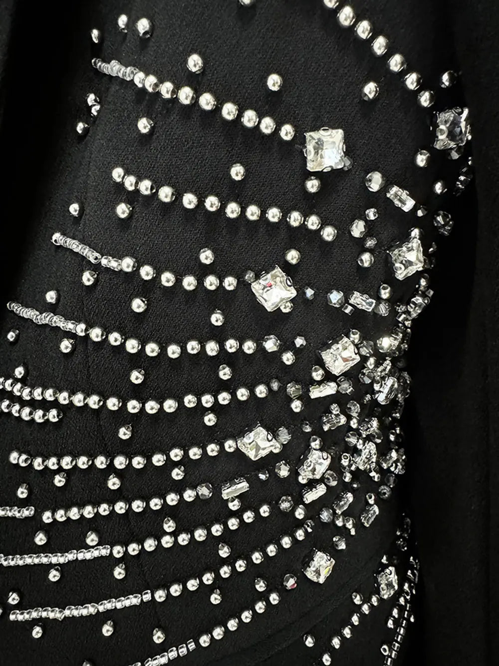 2024 Elegant Women's Light Luxury Diamond Design Suit Pants Set with Collar Long Sleeve Slim Fit Suit Coat+Two Piece Pants Set