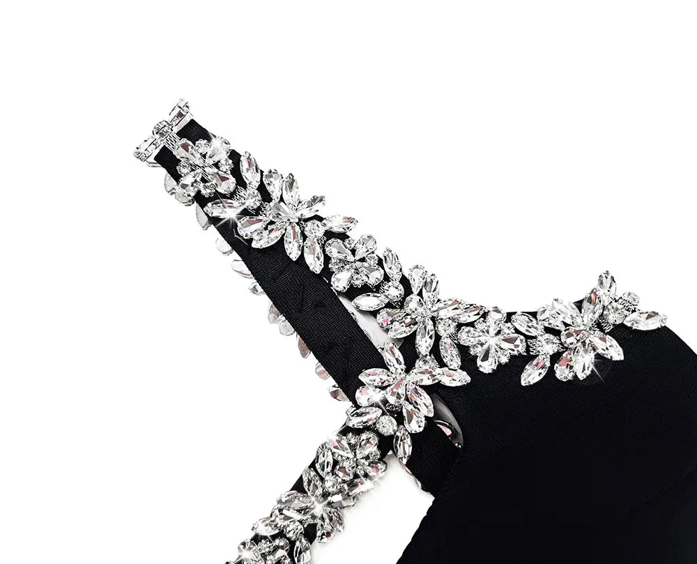 2024 Sexy Women'S Heavy-Duty Nail Bead Rhinestone Bandage Dress, One Shoulder Sleeveless Bodycon Hollow Out Backless Mini Dress