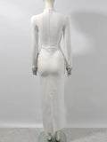 2024 Sexy Women's Heavy Industry Beaded Bandage Dress Bodycon Stand Collar Long Sleeve Midi Dress Cocktail Evening Party Vestido