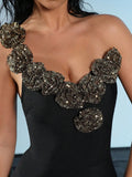 2024 Sexy Women's Light Luxury Sparkle Flower Design Bandage Dress One Shoulder Sleeveless Bodycon Long Dresses Party Vestidos
