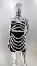 2025 New Spring Women Sexy Strapless Big Crystak Bodycon Mini Bandage Dress Necklace Fashion Celebrate Nightclub Party Dress