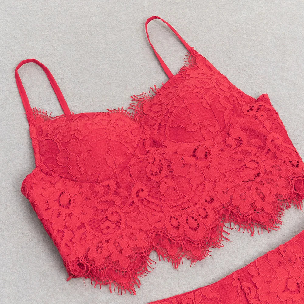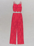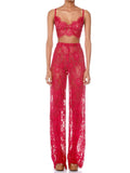 2025 Sexy Women'S Lace Pants Set Spaghetti Strap Sleeveless Backless Ultra Short Vest+Straight Leg Pants Two-Piece Set