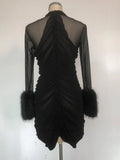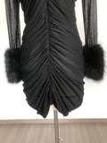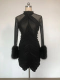 2025 Sexy Women's Patchwork Mesh Dress with High Collar and Hairy Sleeve Design Bodycon Draped Mini Dress Evening Party Vestidos