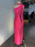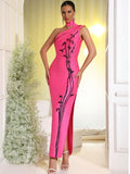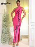 2025 Sexy Women's Printed Bandage Dress with Hanging Neck Slant Neck Sleeveless Ruffle Bodycon Long Dress Evening Party Vestidos