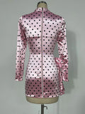 2025 Sexy Women'S Three-Dimensional Flower Patchwork Polka Dot Dress V-Neck Long Sleeved Draped Bodycon Pink Mini Dress Vestidos