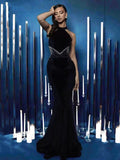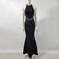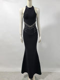 Elegant Black Halter Bandage Maxi Dress with Diamond Bodycon Sleeveless Vestidos Celebrity Party Runway Occasions Evening Gown