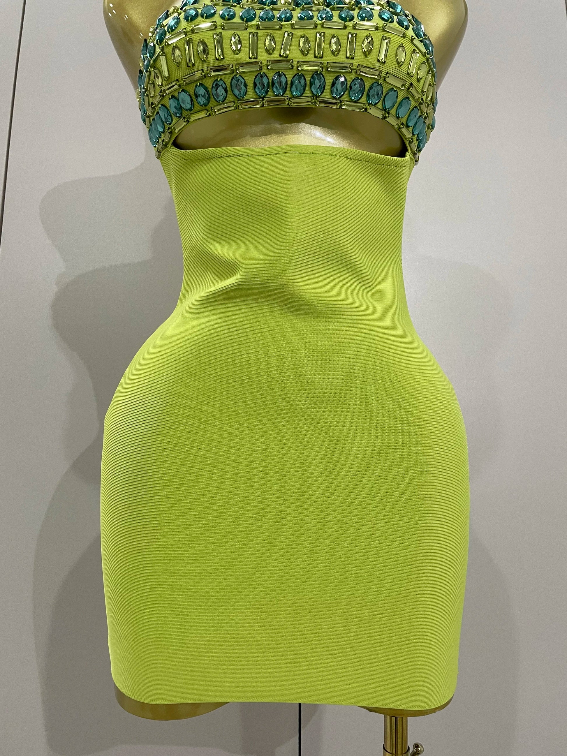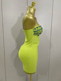Luxury Sexy Strapless Sparkly Diamond Cut Out Bodycon Bandage Dress Women Celebrity Elegant Evening Party Birthday Outfit