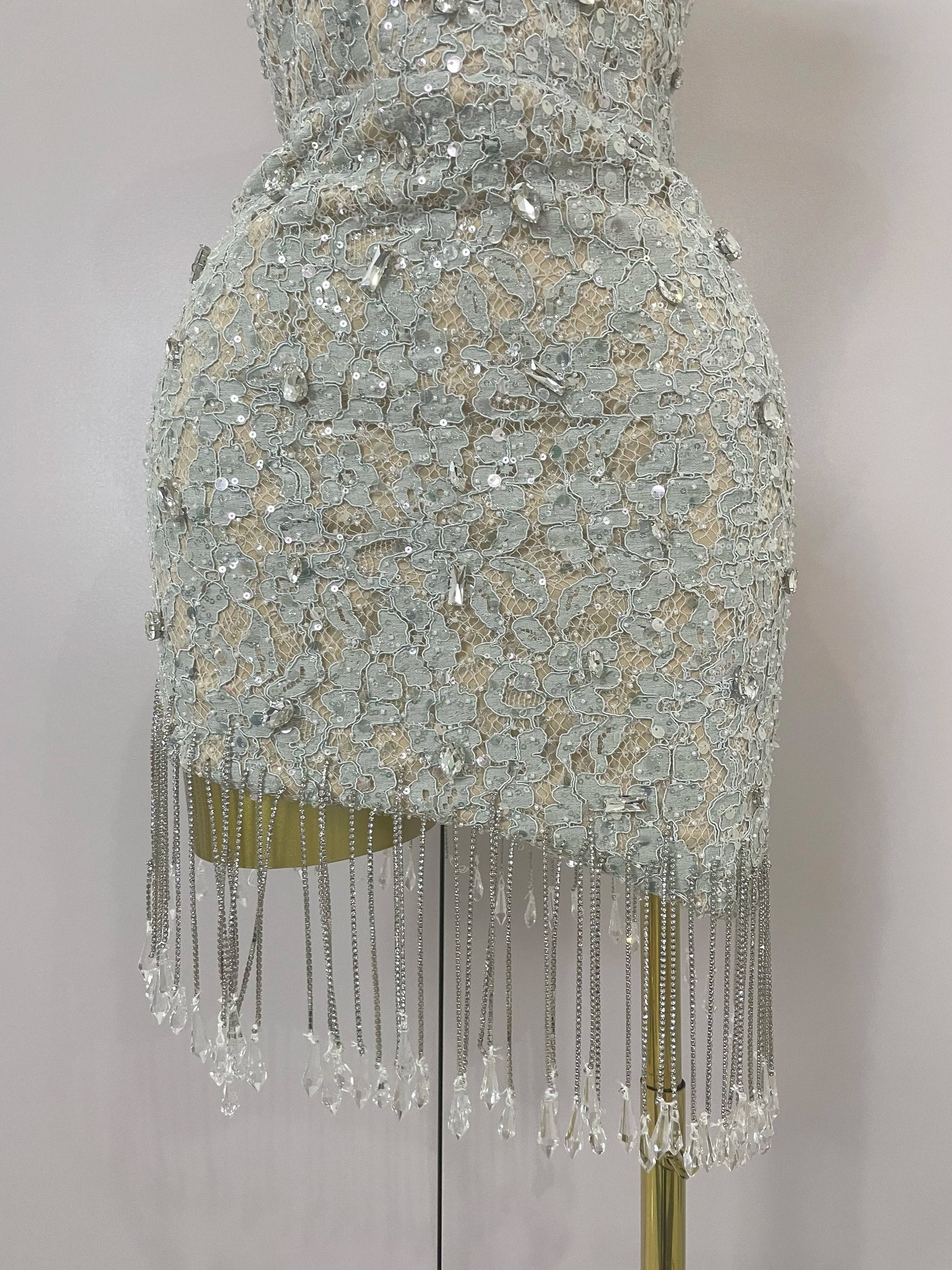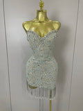 Luxury Sparkle Diamond Tassel Halter Cocktail Dress Women Elegant Evening Formal Gowns Wedding Party Dresses Stage Costumes