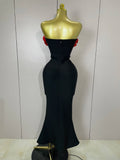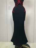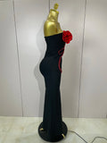 black Off Shoulder Red Flower Bandage Long Dress Women Elegant Fshion Celebrity Party Dress
