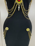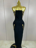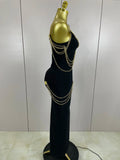 New New Black Chain Spaghetti Strap V-Neck Split Bandage Dress Bodycon Celebrity Club Party Long Dress Vestidos