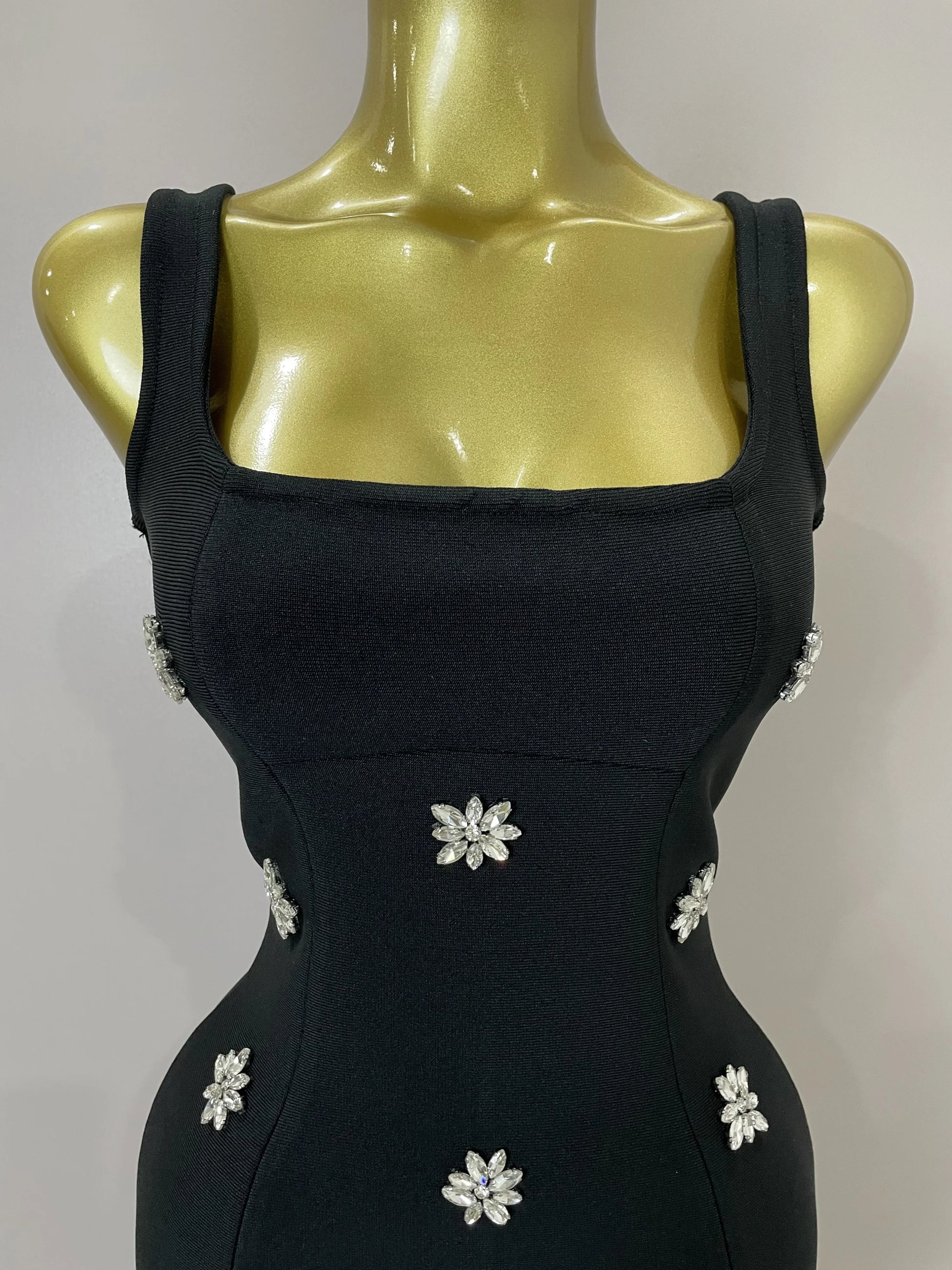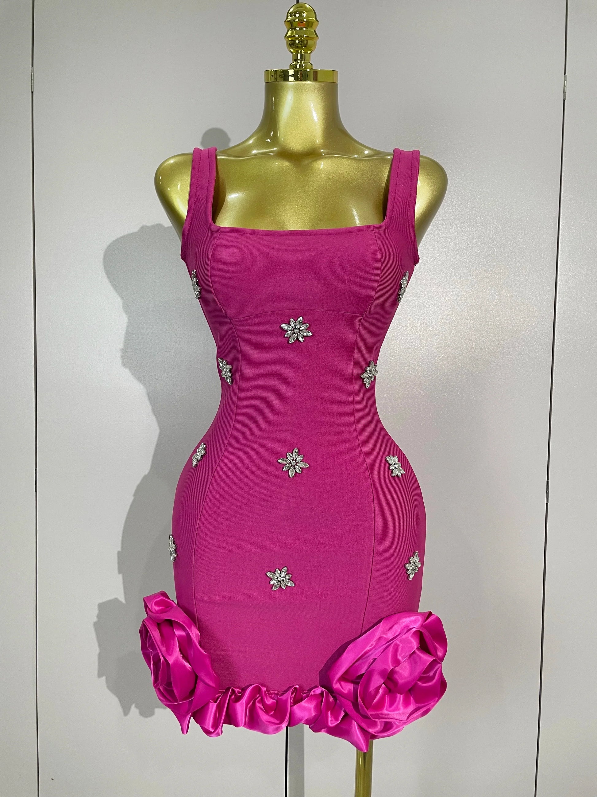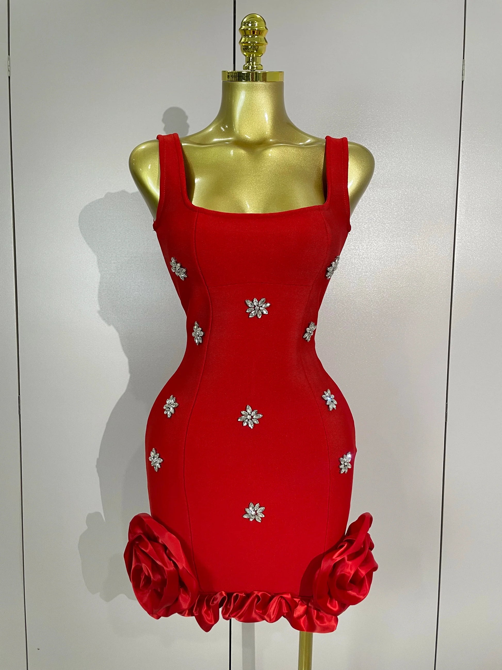 New STyle Shining Crystal Women Sleeveless Bodycon Mini Bandage Dress Elegant Ruffles Cute Birthday Party Celebrate Dress