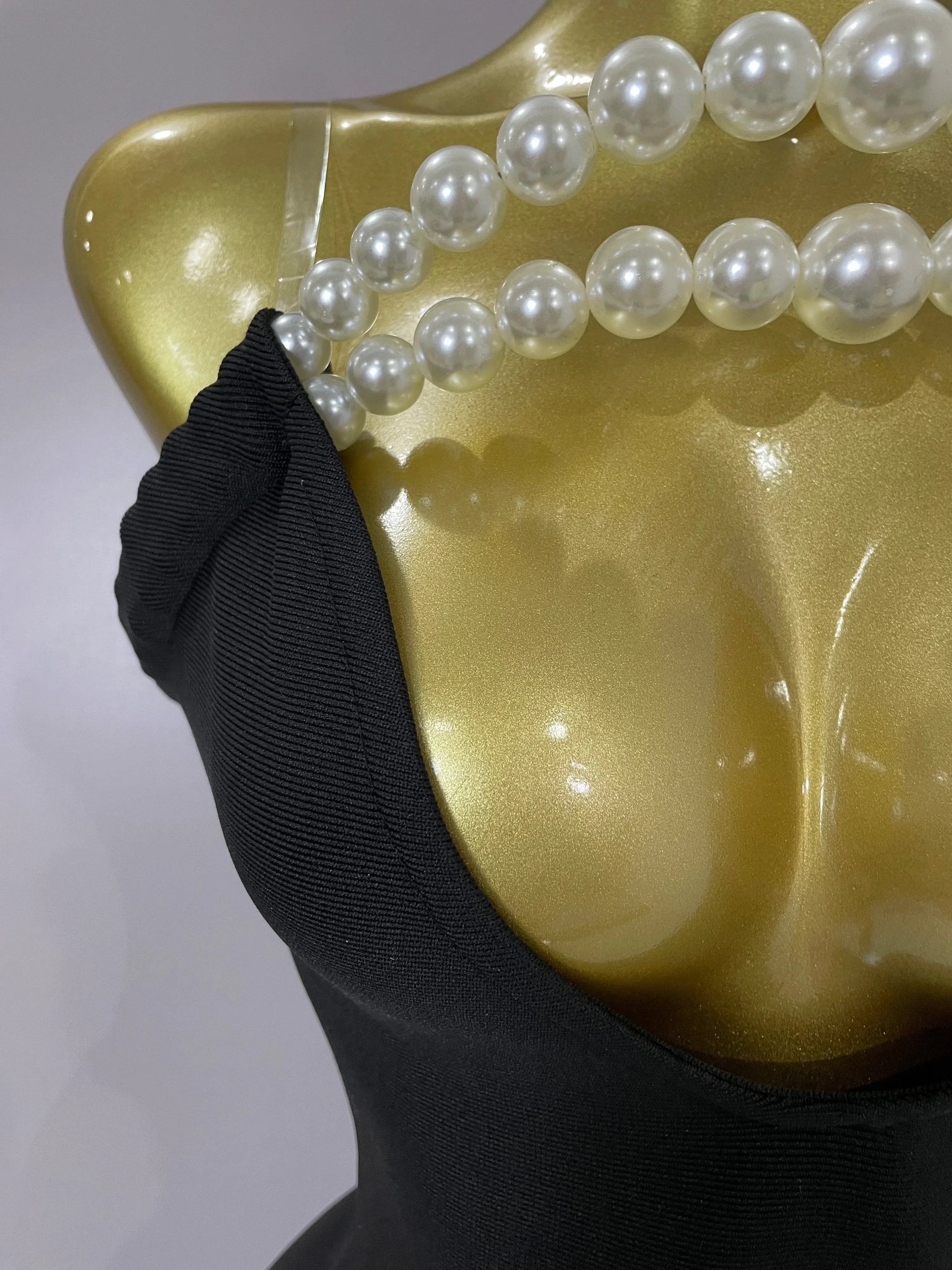 Sexy Backless Strapless Black Beading Long Bandage Bodycon Dress Women Celebrity Elegant Evening Luxury Birthday Dresses