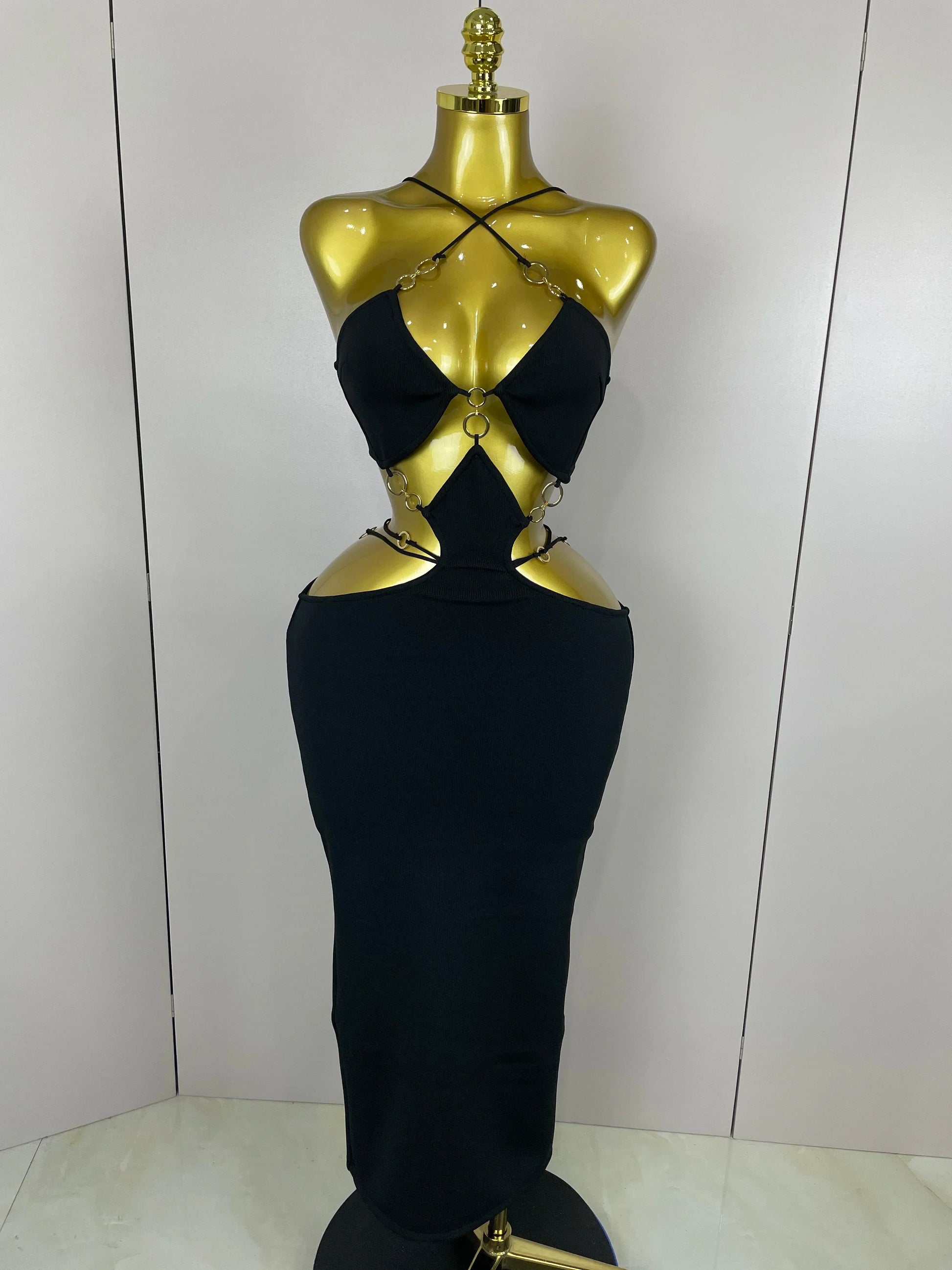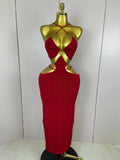 Sexy Halter Hollow Out Sleeveless Black Red Bodycon Long Bandage Dress Women Celebate Elegant Luxury Birthday Club Dress