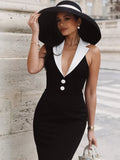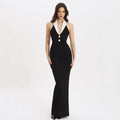 Sexy Lapel Halter Neck Bandage Long Formal Dress For Women Fashion Sleeveless Backless Shiny Robe Bnaquet Street Party Vestido