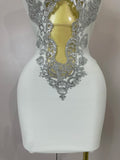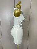 Sexy Silver Sequin White V Neck Cut Out Short Bandage Dress Women New Elegant Luxury Birthday Party Club Wedding Vestidos