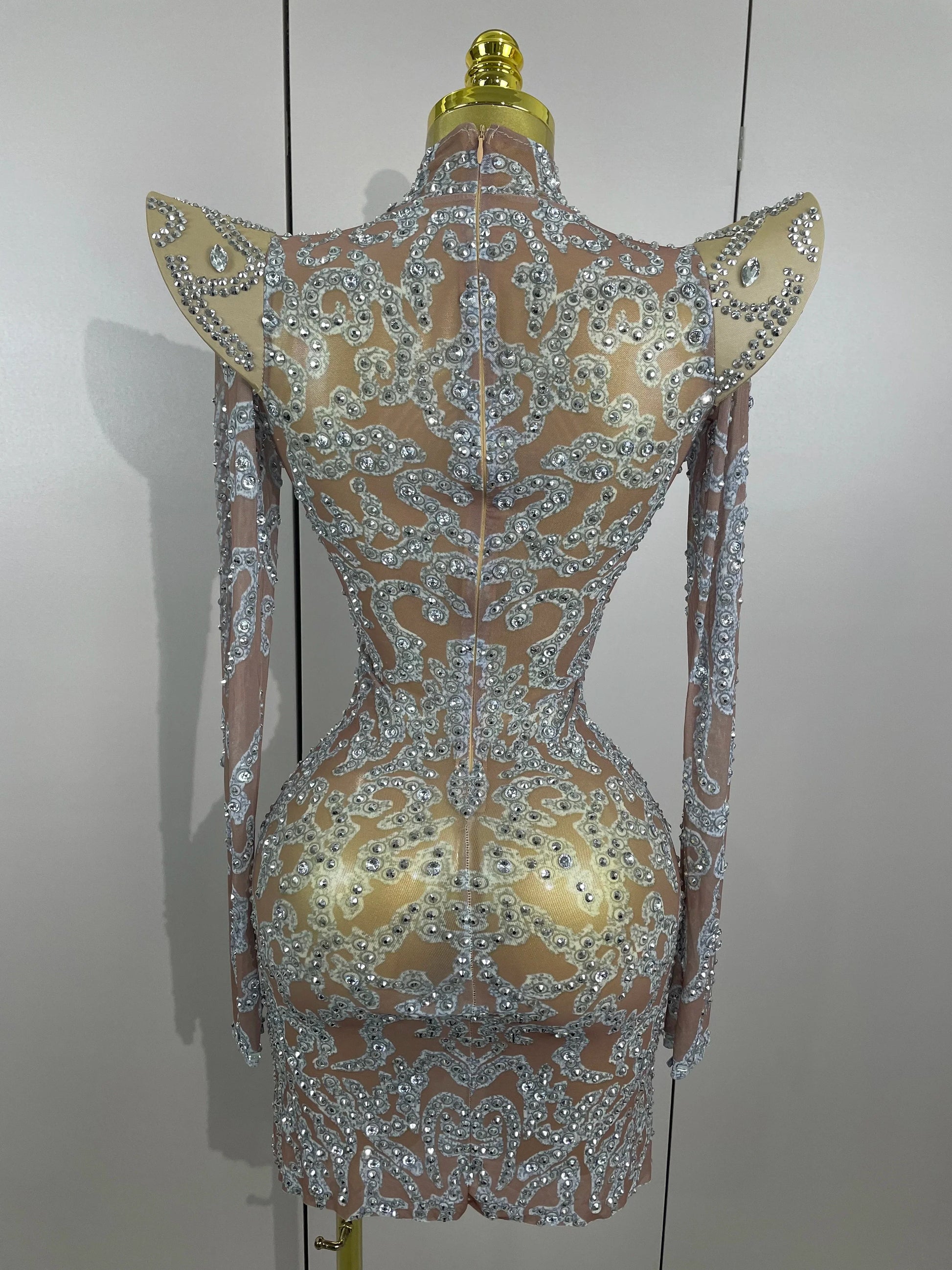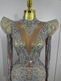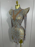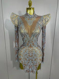 Sexy Singer Stage Drag Queen Costume Women Shiny Rhinestones Transparent Short Dress Birthday Celebrate Photoshoot Dress