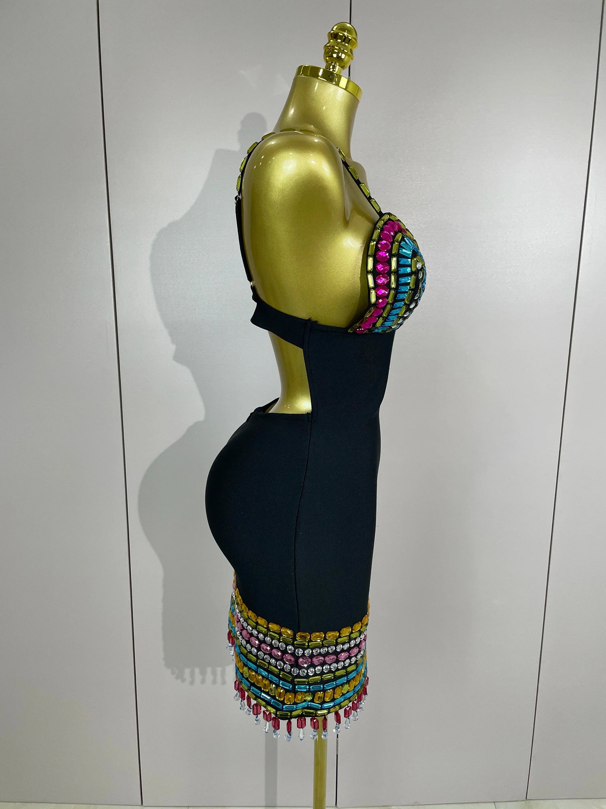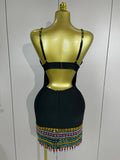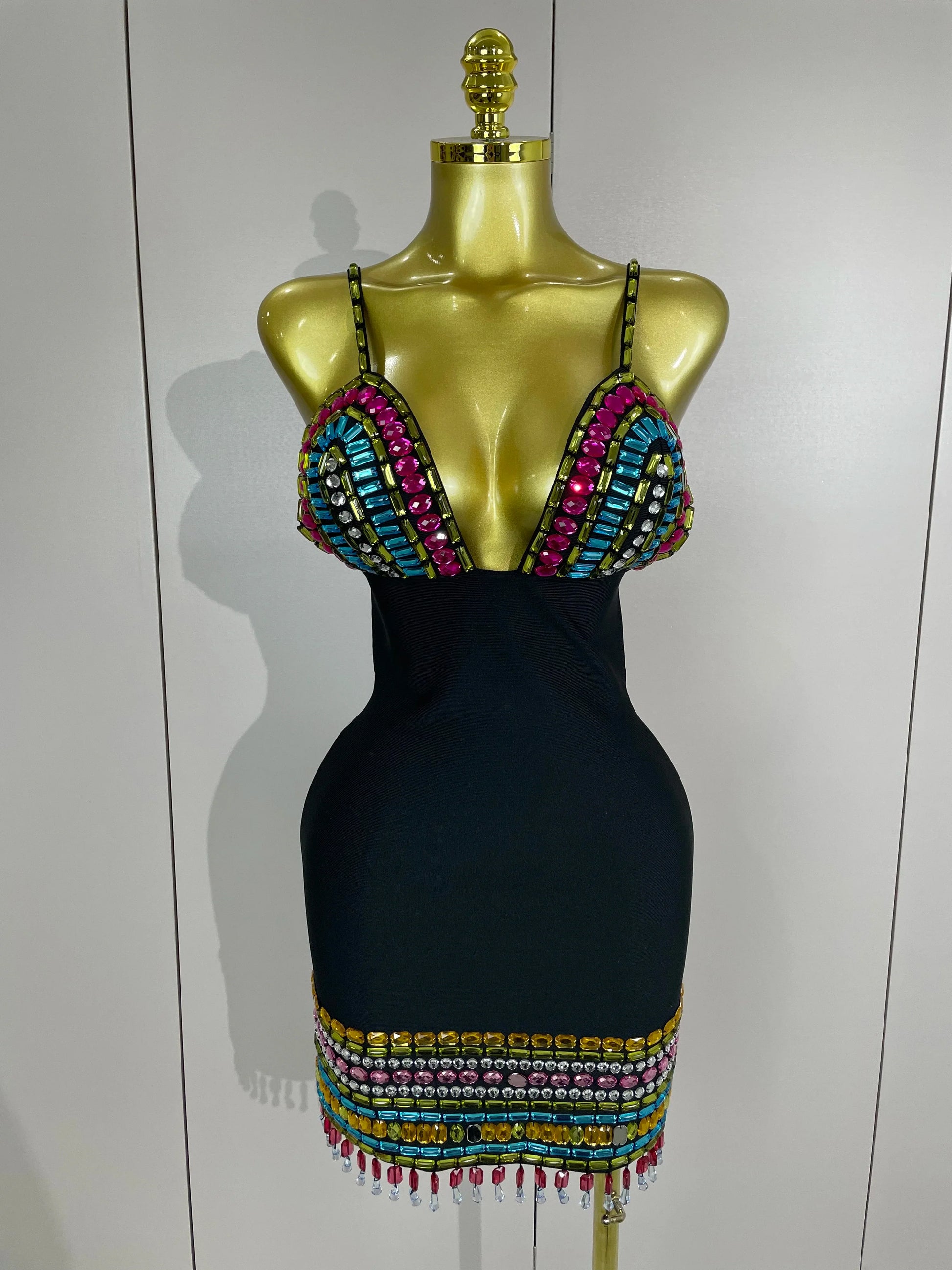 Sparkly Colorful Diamonds V Neck Black Bodycon Bandage Dress Celebrity Elegant Evening Club Party Luxury Birthday Dresses