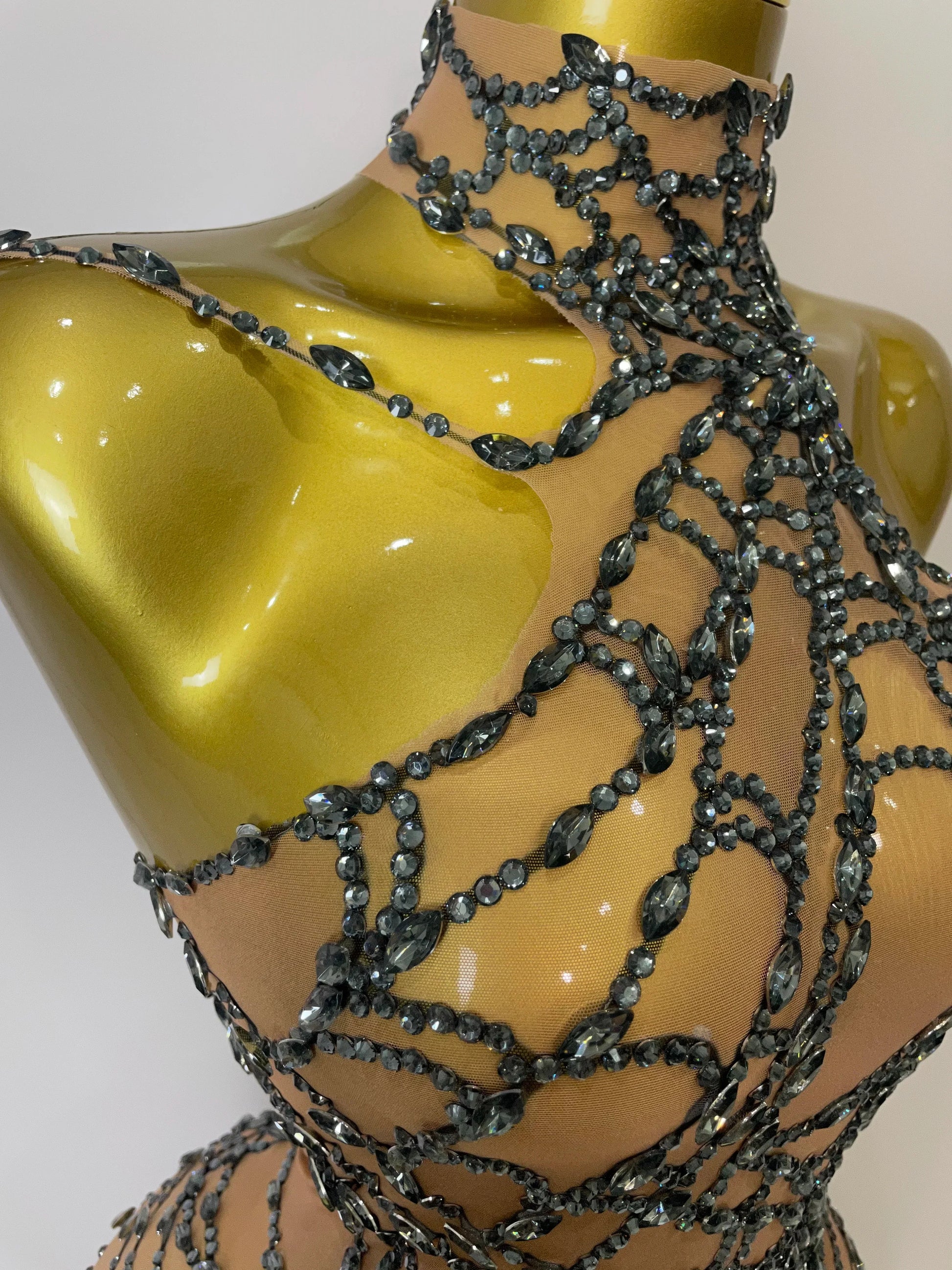 Women Sparkly Diamond Sexy Mesh Jumpsuit Nightclub Bar Party Show Gogo Dancer Clothing Drag Queen Outfit Stage Costume