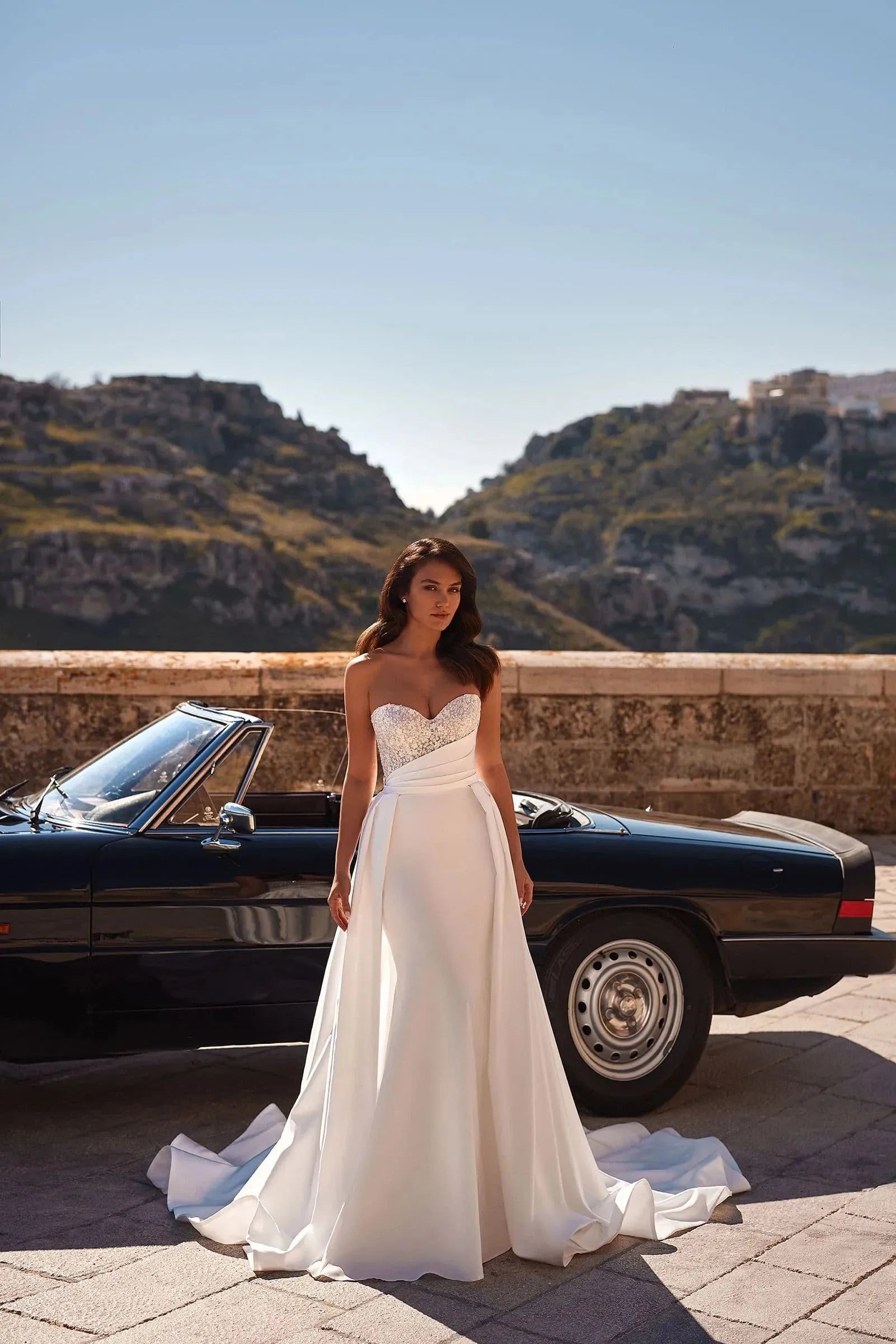Strapless Lace Mermaid Wedding Dresses Long Train Custom Made Vestido De Noival