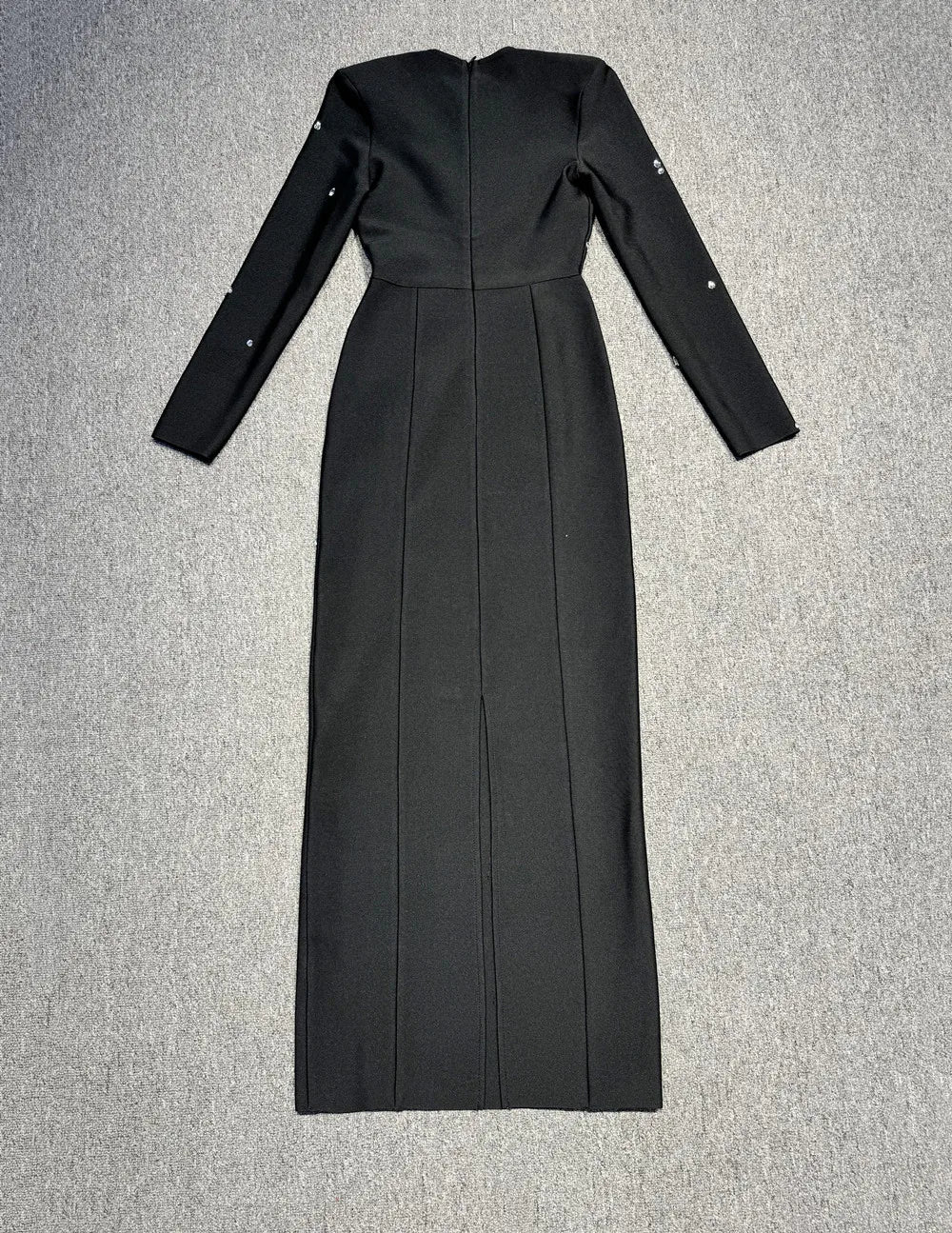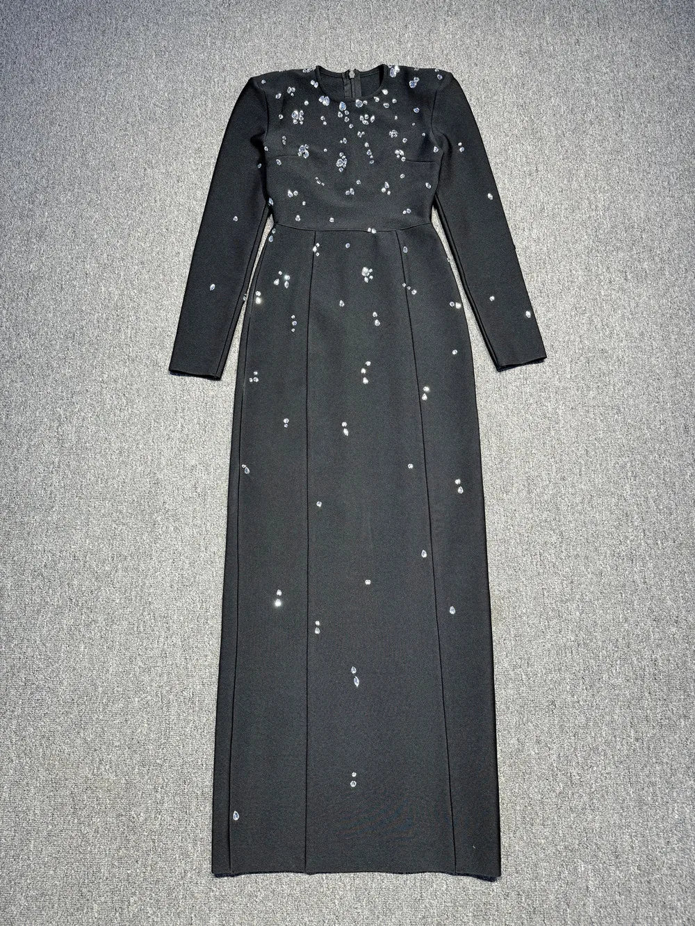 Top Quality Women Long Sleeve Shinning Crystal Bodycon Long Bandage Dress Elegant Evening Party Occation Celebrate Outfit