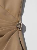 Solid Slimming Spliced Folds Irregular Dresses for Women V Neck Long Sleeves Temperament Dress Female Fashion New