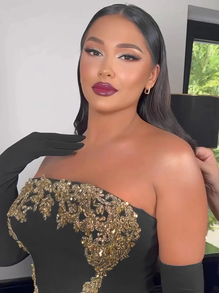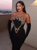 VC Glamorous Black Strapless Mermaid Dress with Crystal Embellishments for Gala Events Evening Gown