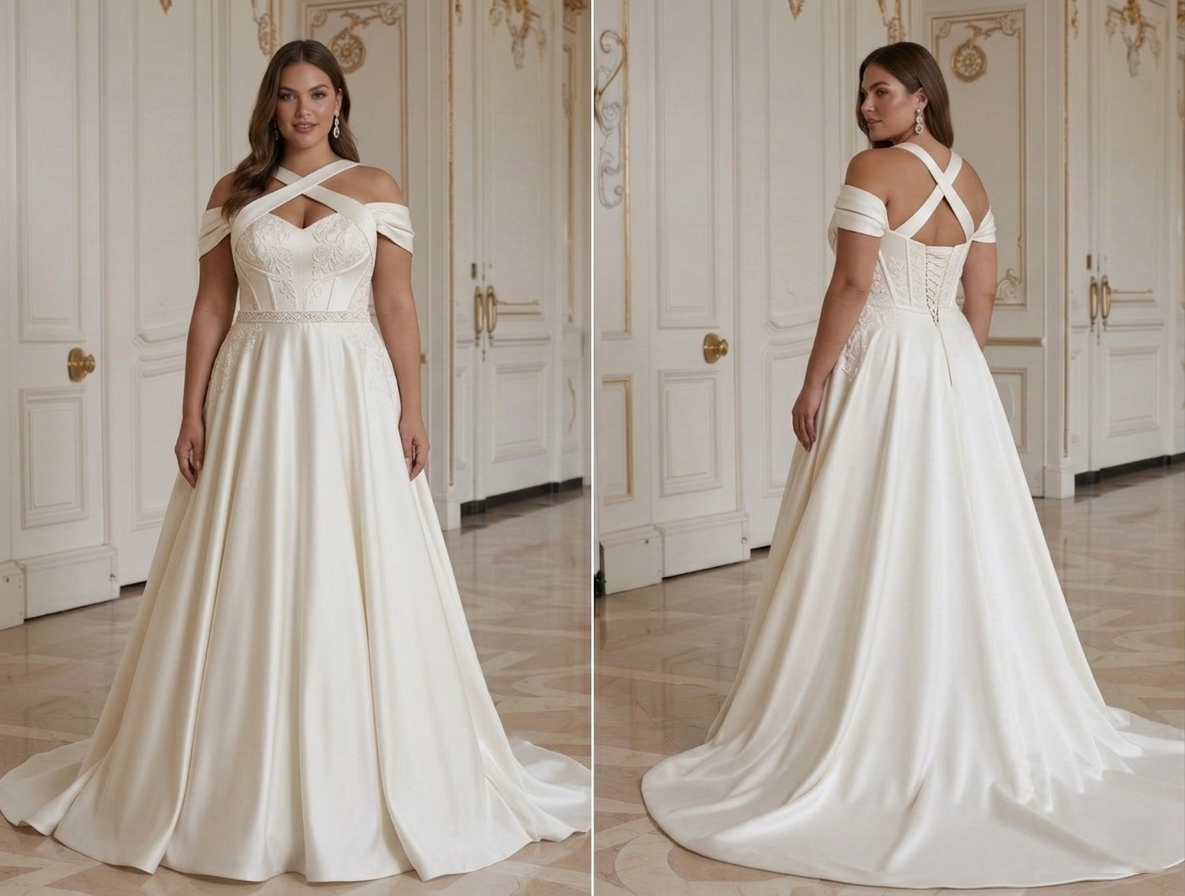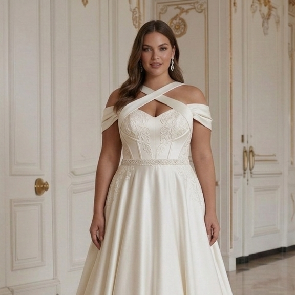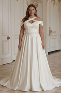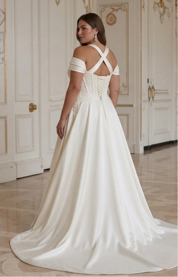 Brudekjole for plus size-brud med strukturert støtte i overdelen