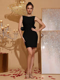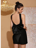White Backless Pearl Bow Evening Party Dress Bandage Women 2025 Robes Elegant Sexy Dress Bodycon Mini Summer Dress Vestidos
