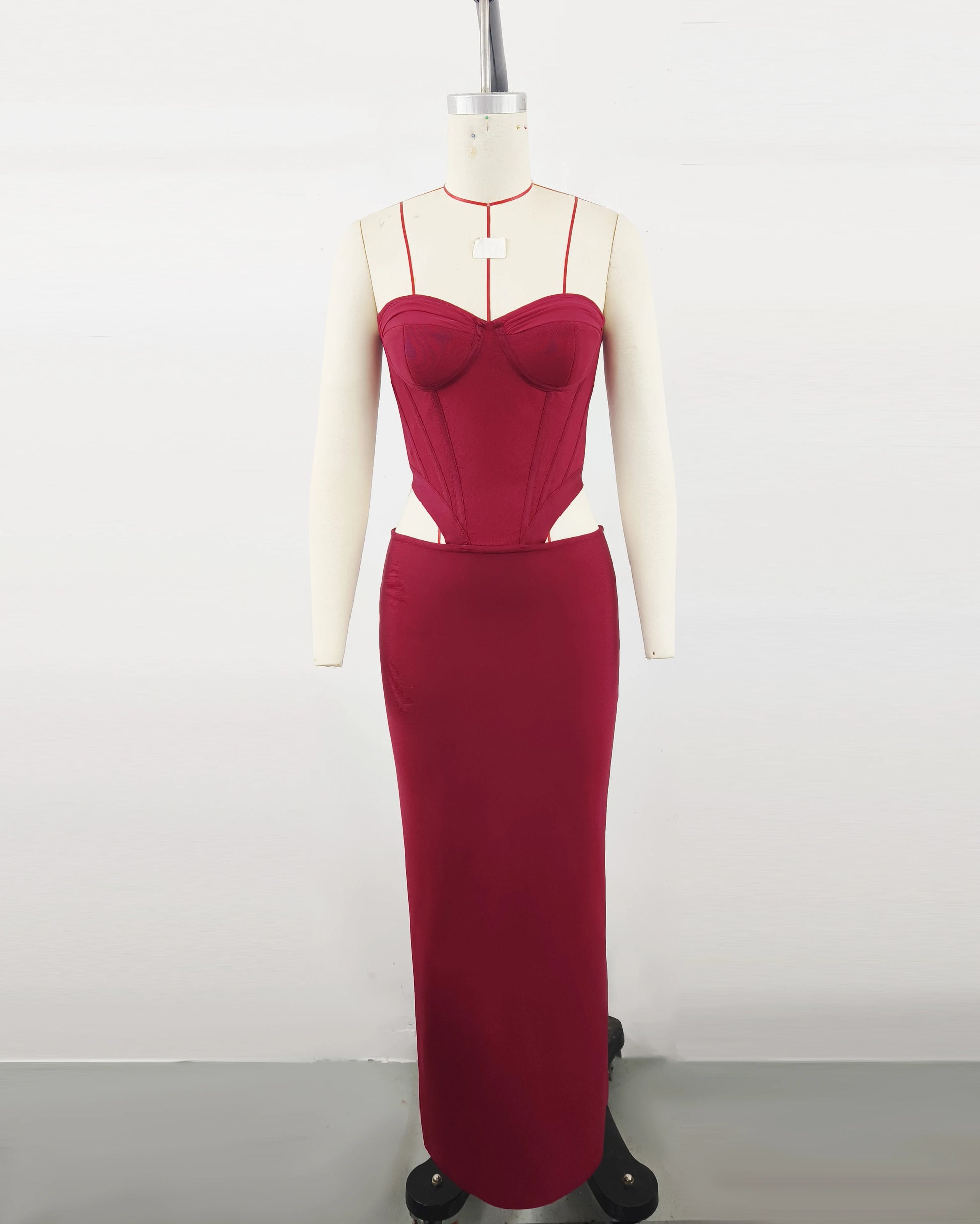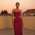 Women Sexy Strapless Hollow Out Waist Bodycon Long Bandage Dress Wedding Mermaid Celebrate Birthday Party Outfit