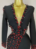 Women Celebrity Sexy Long Sleeve V Neck Rhinestone Black Bandage Dress Elegant Evening Club Luxury Birthday Party Dresses