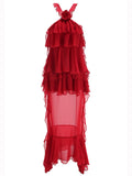 Women Gauze Perspective Irregular Elegant Long Party Dress New Ruffles Sleeveless Fashion Tide Summer 2025