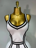 Regardless of the color you select for your dress, the white, black, or ivory lace accents will remain consistent. This applies to designs where the bodice and skirt are in different colors, maintaining a harmonious and sophisticated aesthetic.