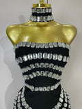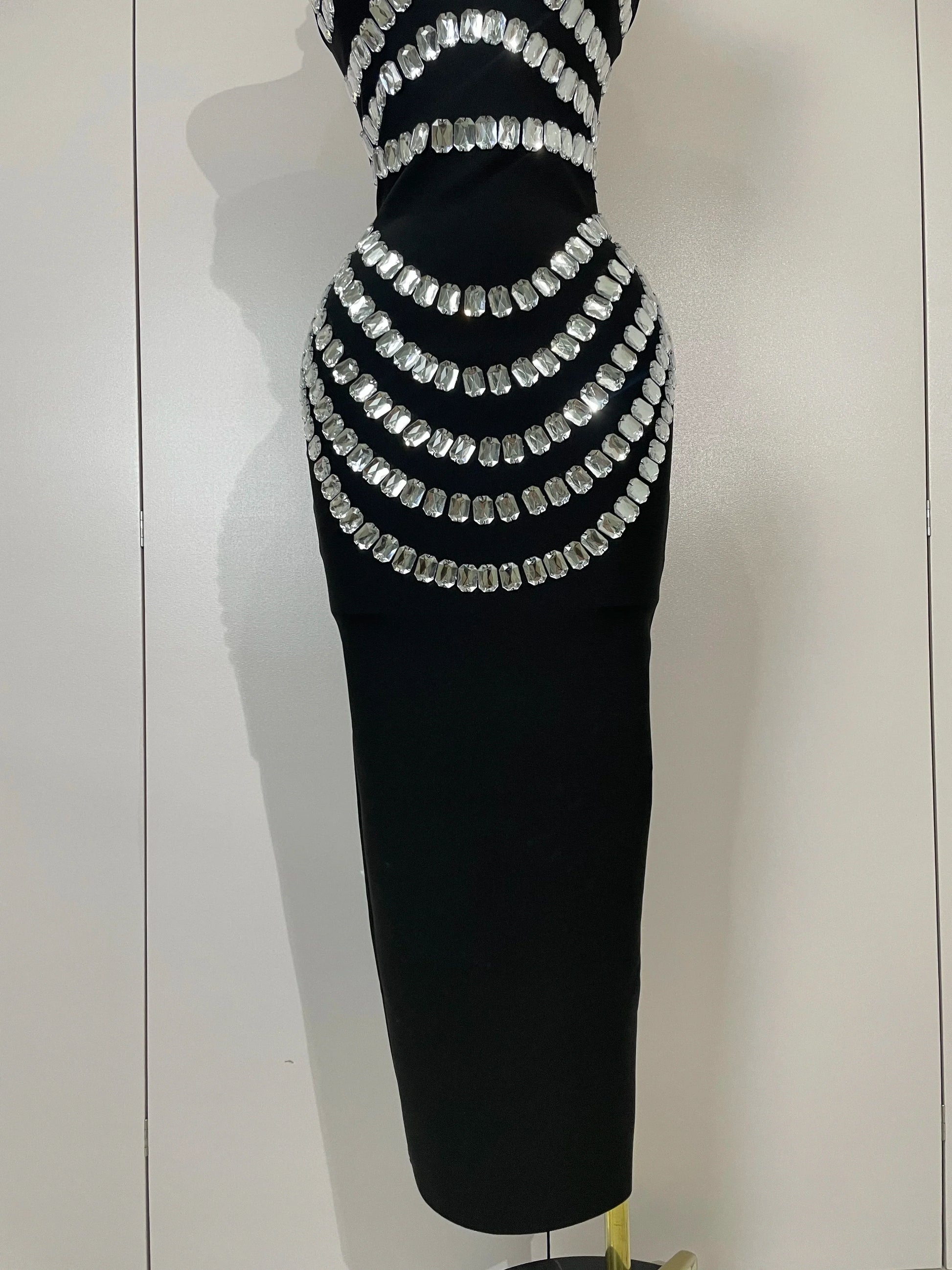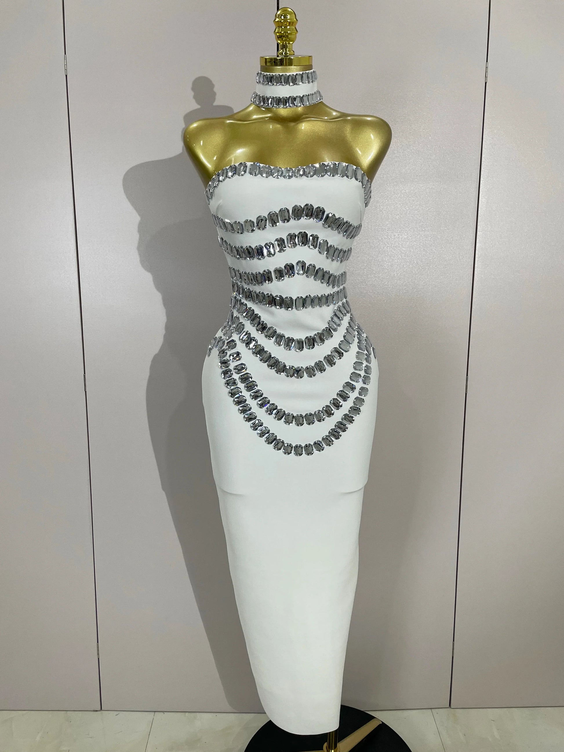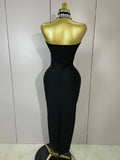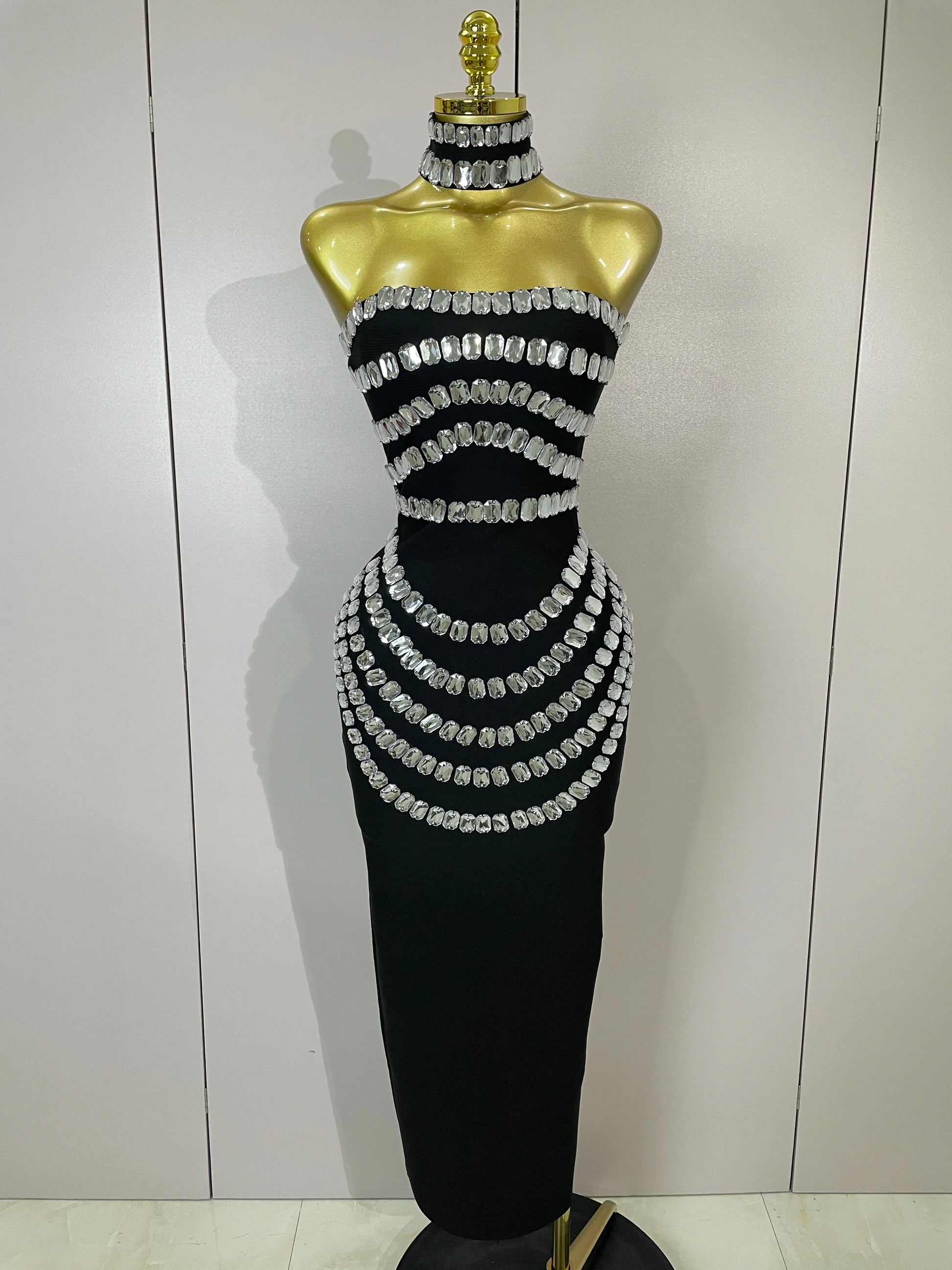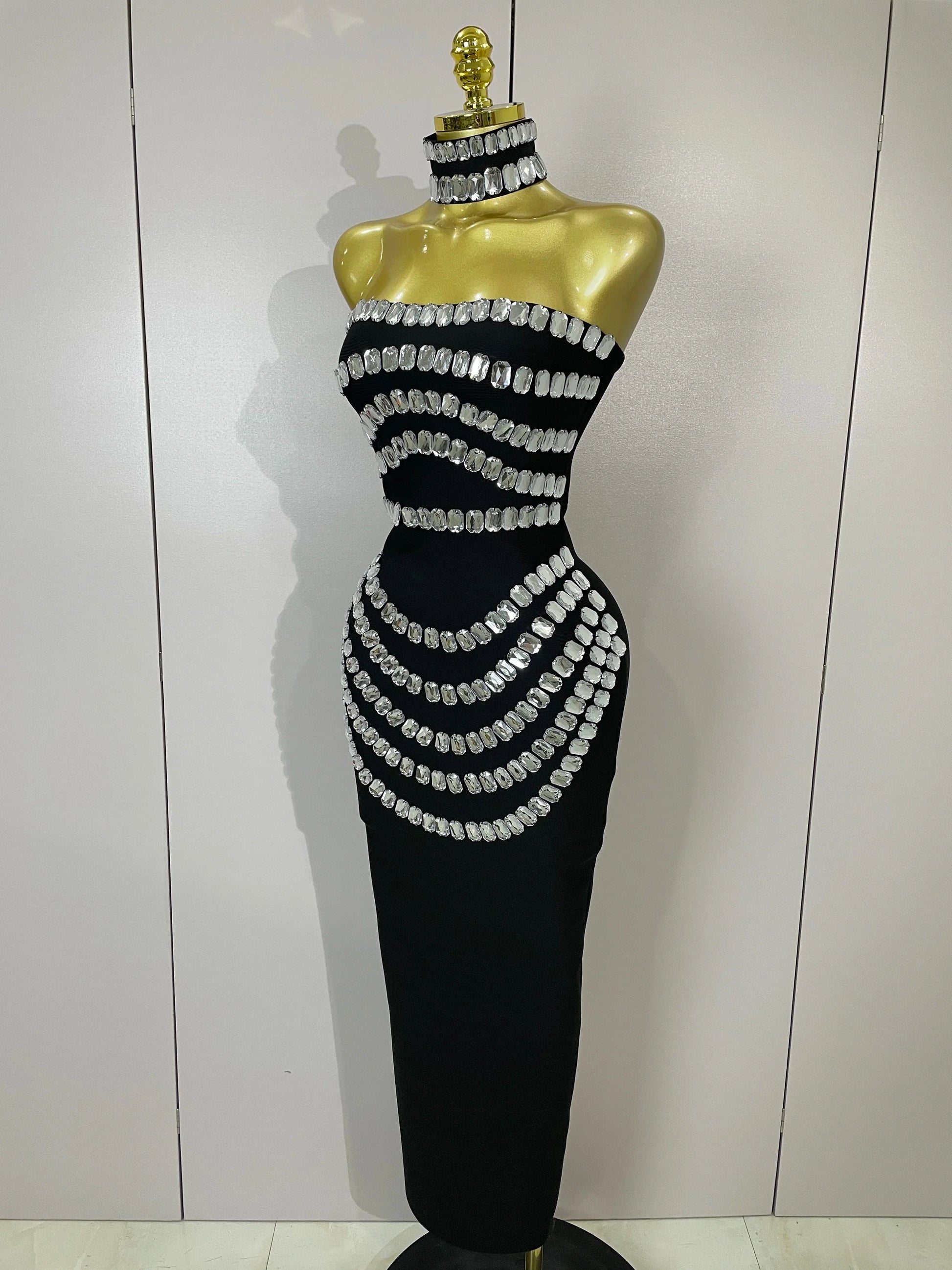 Women Sexy Backless Strapless Black Beading Long Bandage Bodycon Dress Celebrity Elegant Evening Luxury Birthday Dresses