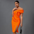 2022 New Summer Women One Shoulder Sexy Ruffles Bodycon Mini Dress Bandage Rayon Celebrate Birthday Party Dress Vestido